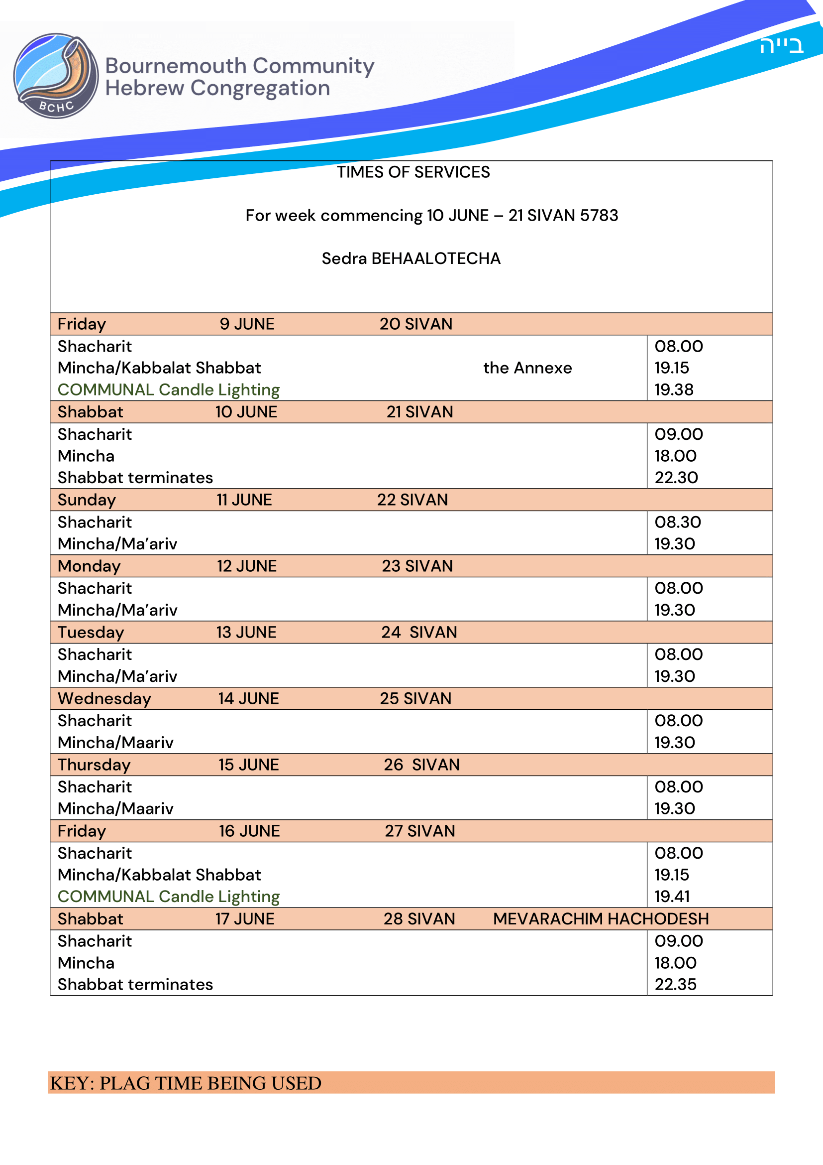 Shul Services & Luach