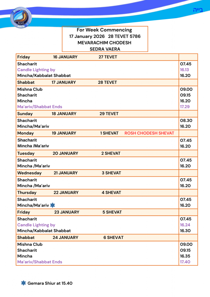 PLEASE NOTE THAT FROM 31ST OCTOBER SHABBAT SERVICES WILL TAKE PLACE IN THE NEW SHUL, ENTRANCE VIA 28B MANOR ROAD.