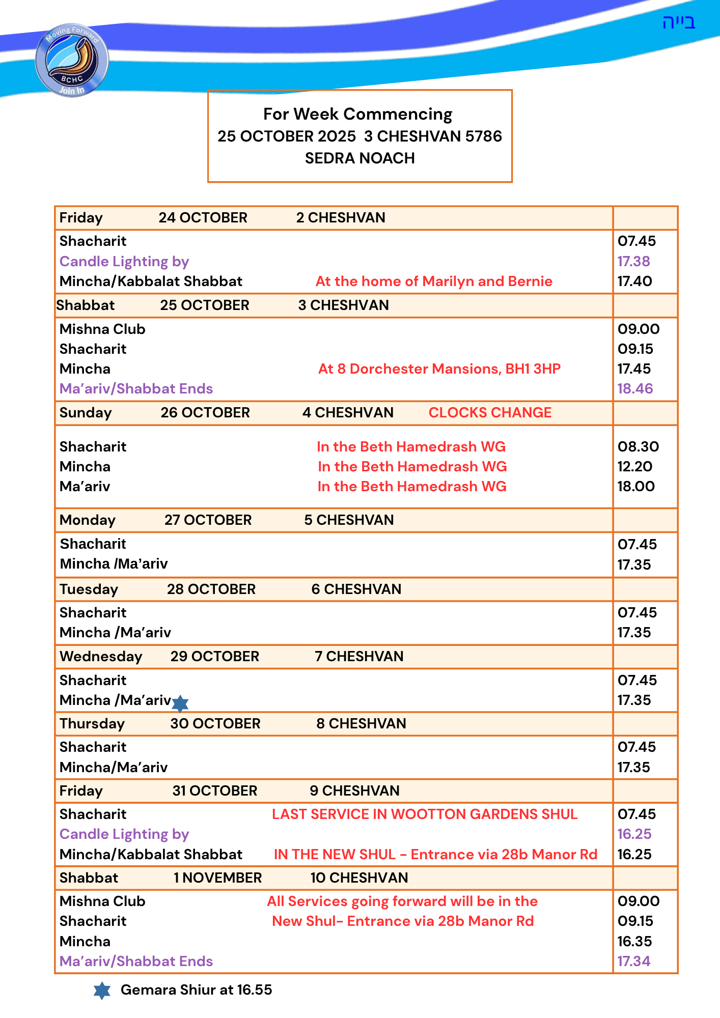 Shul Services & Luach