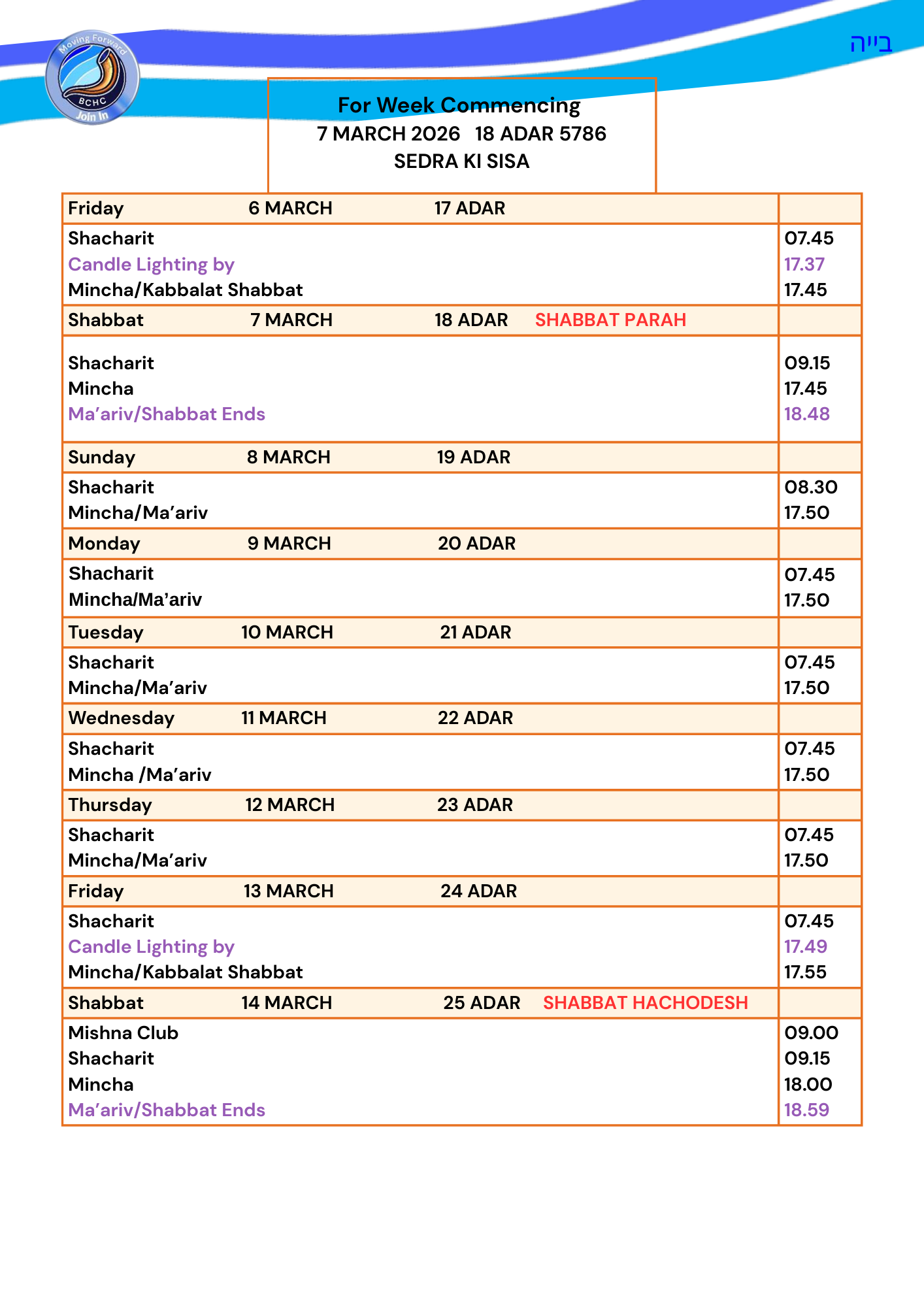 Shul Services & Luach